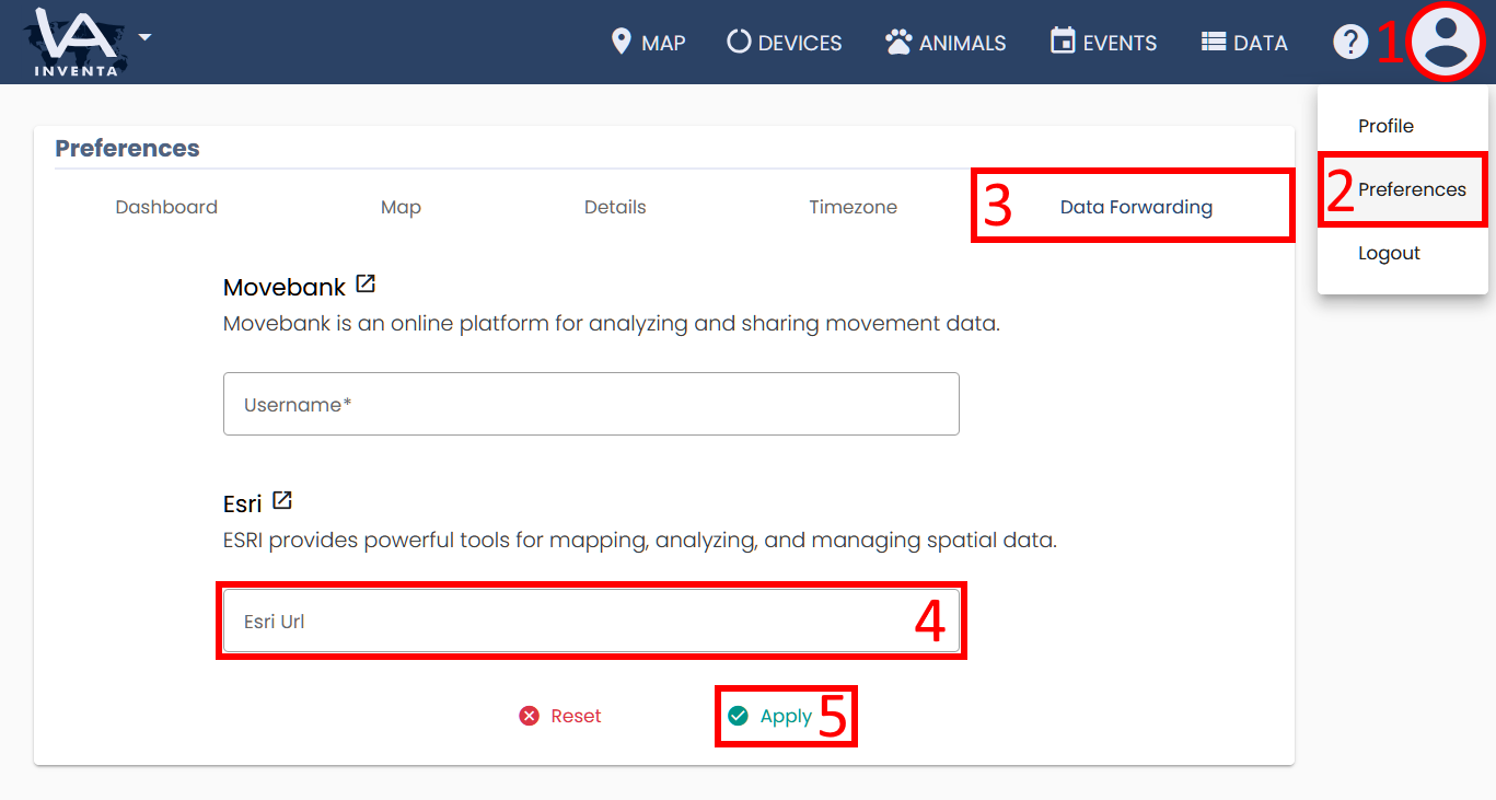Now you need to activate the Esri Data Forwarding for your individual collars. Here is how to do this: