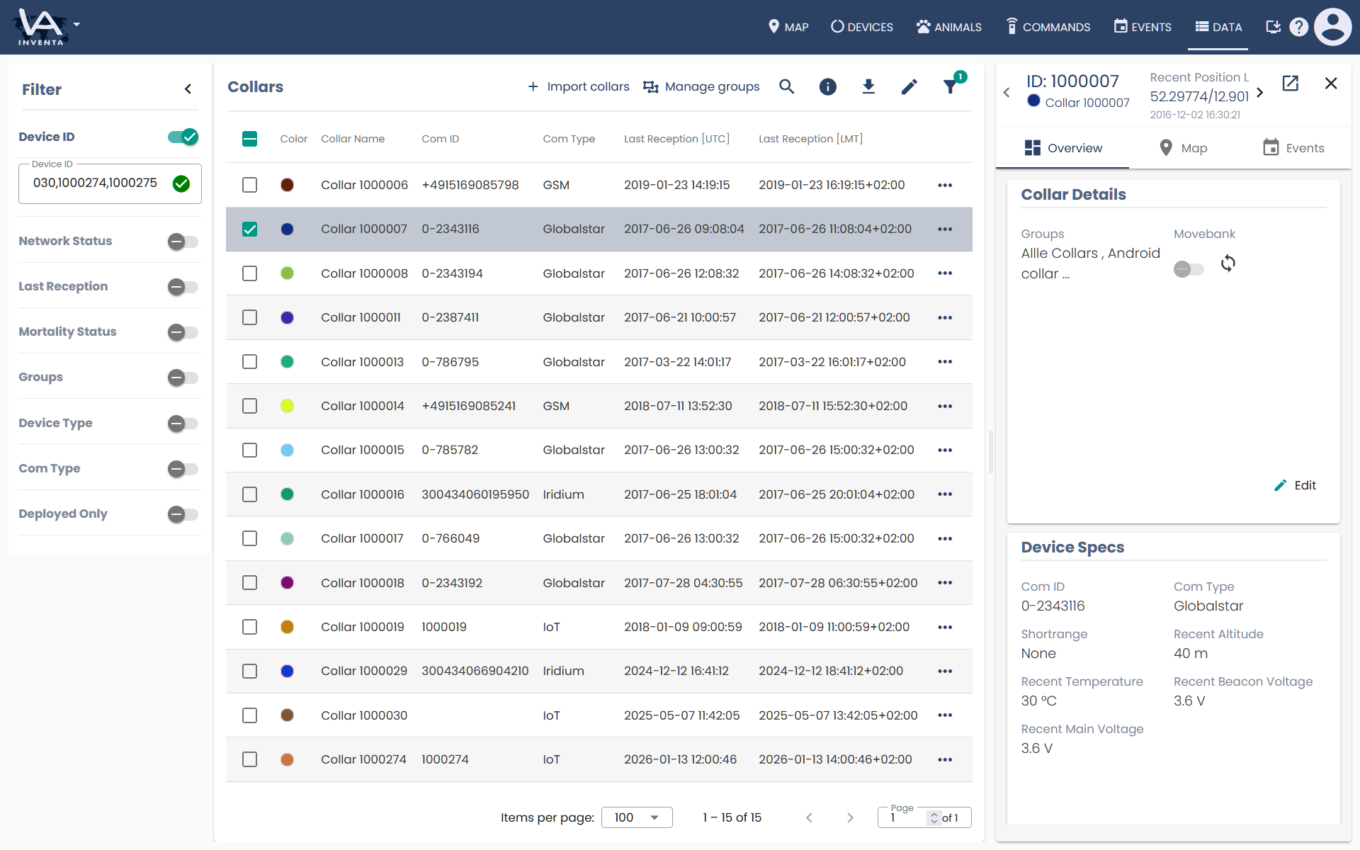 INVENTA wildlife monitoring is a webservice to display and manage your collar data.