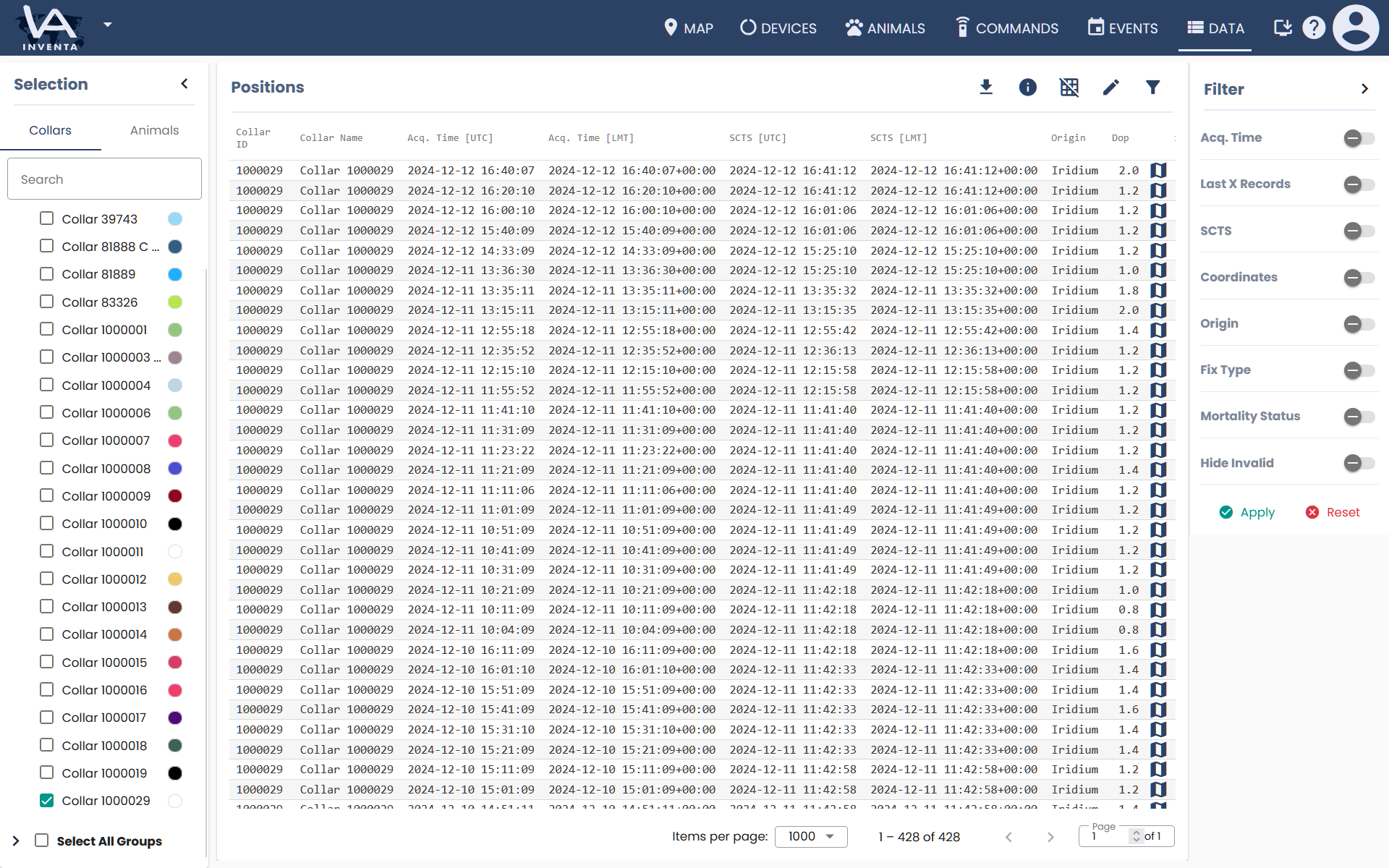 - View the collar’s positions on a map